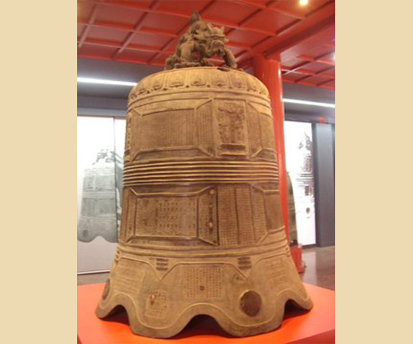 銅鐘發音宏亮而悠揚,自佛教傳入中國始,銅鐘就逐漸成為佛教寺院中不可缺少的法器--佛鐘。明代科學家宋應星在《天工開物》里寫道:“梵宮仙殿,必用以明×(手+耳 打動之意)謁者之誠,幽起鬼神之敬。”因此,名剎寶寺皆有鐘。當暮靄漸合,寺院廟堂鐘聲回蕩,木魚橐橐,與僧尼頒經聲溶為一缽,增添了蓮花佛界特有的神秘氣氛。