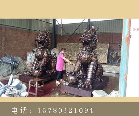 古人把雄性稱麒,雌性稱麟,《宋書》:麒麟者,仁獸也。牡曰麒,牝曰麟。麒麟是吉祥神寵,主太平、長壽;麒麟因其深厚的文化內涵,在中國傳統民俗禮儀中,被制成各種飾物和擺件用于佩戴和安置家中,有祈福和安佑的用意。博創銅雕公司提供各種麒麟銅雕等銅雕的訂做,我們制做的麒麟銅雕做工精湛。做為雕塑廠家,滿足您的需求,為您打造一流的雕塑作品是我們的使命。博創銅雕公司為您鑄造各種銅雕工藝品,歡迎聯系洽談!