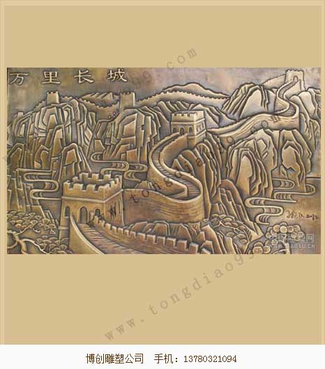 長城并不只是一道單獨的城墻,而是由城墻、敵樓、關城、墩堡、營城、衛所、鎮城烽火臺等多種防御工事所組成的一個完整的防御工程體系。這一防御工程體系,由各級軍事指揮系統層層指揮、節節控制。博創銅浮雕公司提供各種萬里長城浮雕等銅浮雕的訂做,我們制做的萬里長城浮雕做工精湛。做為雕塑廠家,滿足您的需求,為您打造一流的雕塑作品是我們的使命。博創銅浮雕公司為您鑄造各種銅浮雕工藝品,歡迎聯系洽談!