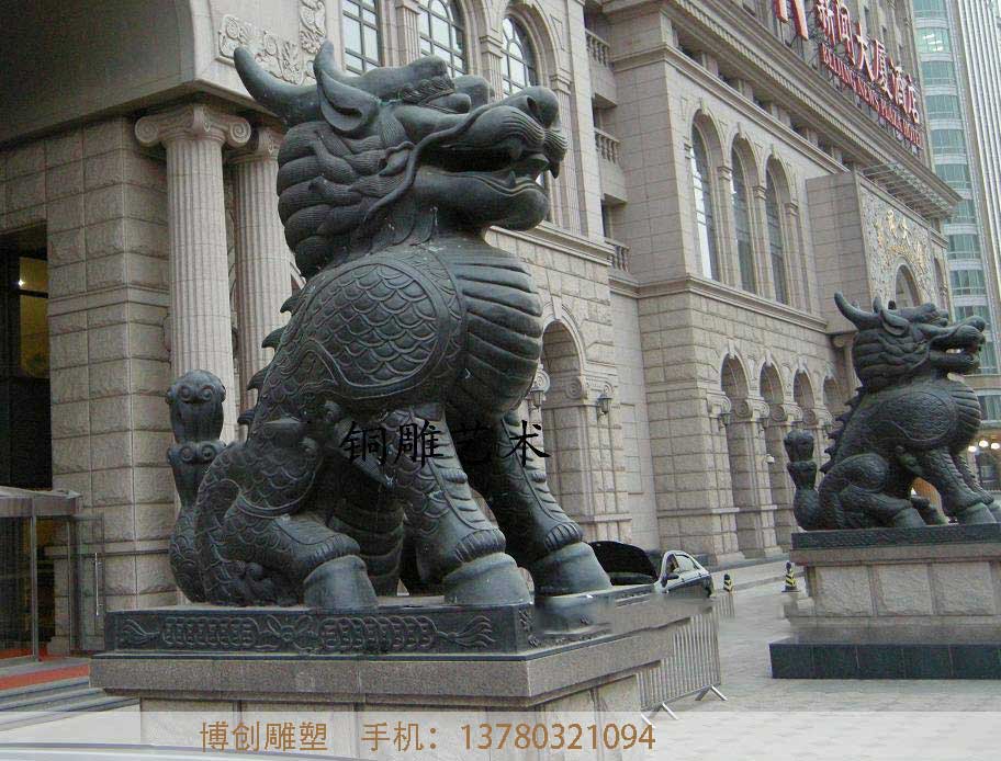 尾毛似龍尾狀舒展。它的綜合面不及龍、鳳那么廣泛,不過名氣也不算小。從古至今不乏能人志士將麒麟的形象以各種形式展現出來。自青銅文化興起后,銅雕麒麟也變得更加廣受歡迎,以銅打造麒麟形象,使人觸及可摸,這樣麒麟在人們心中的形象就變得更加明確。圖為博創銅雕鑄造的麒麟雕像,處處體現出博創銅雕的精湛之處。我公司是多年的銅雕公司,對于鑄造銅雕有著相當豐富的經驗。我公司秉持嚴謹、認真的工作理念,令客戶滿意是我們的宗旨,滿足客戶的需求是我們的職責。
