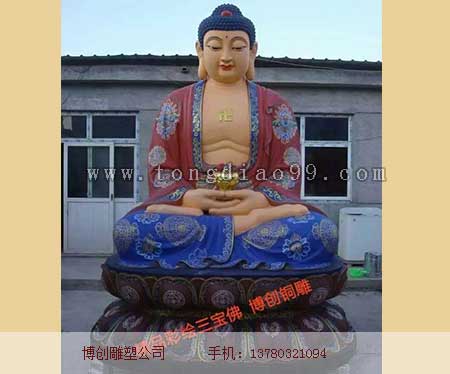 彩繪三寶佛是佛像雕塑中常見的雕塑作品,是銅佛像雕塑的一種,我公司提供彩繪三寶佛等等銅雕佛像雕塑的訂做,歡迎聯(lián)系。我廠佛像秉持嚴謹、認真、尊重信仰的理念,做,就要做到令客戶滿意。將佛像的莊重、肅穆體現(xiàn)的淋漓盡致。我公司做為大型雕塑企業(yè),可以提供各種雕塑,歡迎聯(lián)系我們進行訂做。三寶釋迦佛也稱三寶佛又稱三世佛, 三個佛世界的佛。中間是裟婆世界的中央現(xiàn)在佛 釋迦牟尼佛, 左脅東方凈琉璃世界的藥師佛,右脅西方極樂世界的阿彌陀佛也稱橫三世佛。寺廟大雄寶殿所供一般三寶佛,或者華嚴三圣。寶就是佛 寶、法寶、僧寶。佛寶是釋迦牟尼佛,法寶即四諦圣法,僧寶就是最初被度的五比丘。根據(jù)大乘佛教的說法,人人可以成佛,佛的主要任務(wù)是度化眾生超越輪回成佛,往生西方極樂世界。三寶佛是中國廟宇中的主要神像。三寶佛在藏傳佛教中占有相當重要的地位。