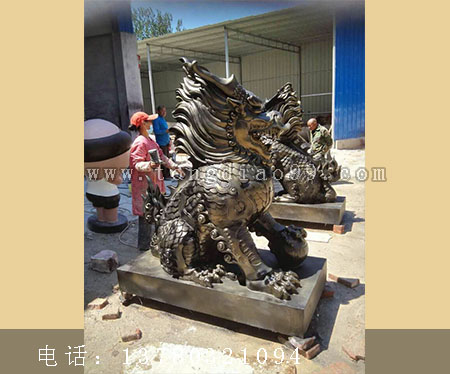 建造的廟宇,銅獅子擺放在左邊,銅獅子擺放在右邊。銅獅子不是在正門兩側,比如坐落在廣場前,則純是裝飾取象征意義。圖為博創銅雕鑄造的故宮獅,處處體現出博創銅雕的精湛之處。我公司是多年的銅雕公司,對于鑄造銅雕有著相當豐富的經驗。我公司秉持嚴謹、認真的工作理念,令客戶滿意是我們的宗旨,滿足客戶的需求是我們的職責。我們有著專業的制作團隊,無論客戶您有著何種需求,相信我們都能根據您的需求加工定制,給您一副令您滿意的作品。