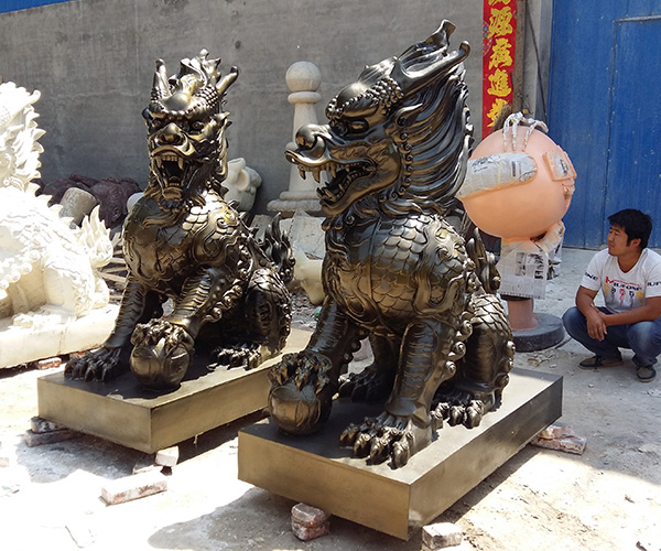 我廠制作的銅麒麟雕塑,采用鑄銅工藝制作,我們有著優秀的麒麟雕塑鑄造大匠,塑像工藝高超,做工工藝精湛,一流的品質,是您訂做銅雕麒麟的首選。